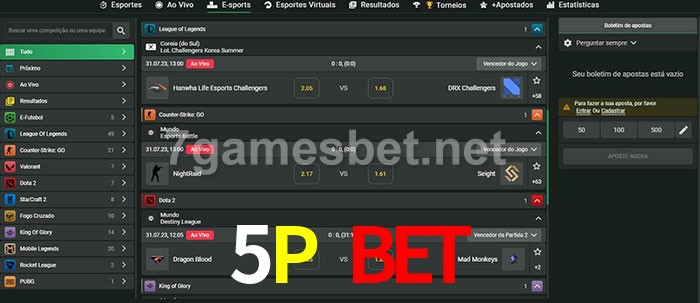 O 5P Bet oferece uma grande seleção de opções de apostas em e-sports com probabilidades competitivas